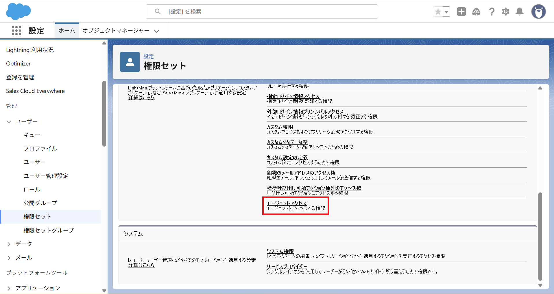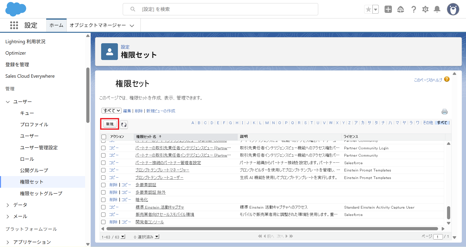 作成した権限セットおよび「プロンプトテンプレートユーザー」に対して、以下の手順でユーザーに割り当てます。