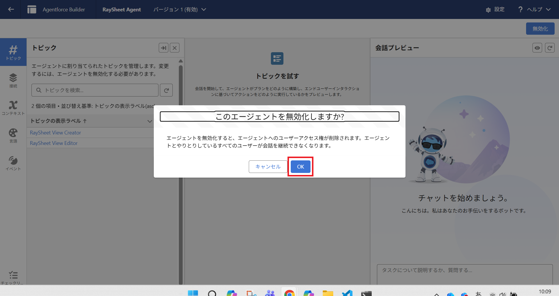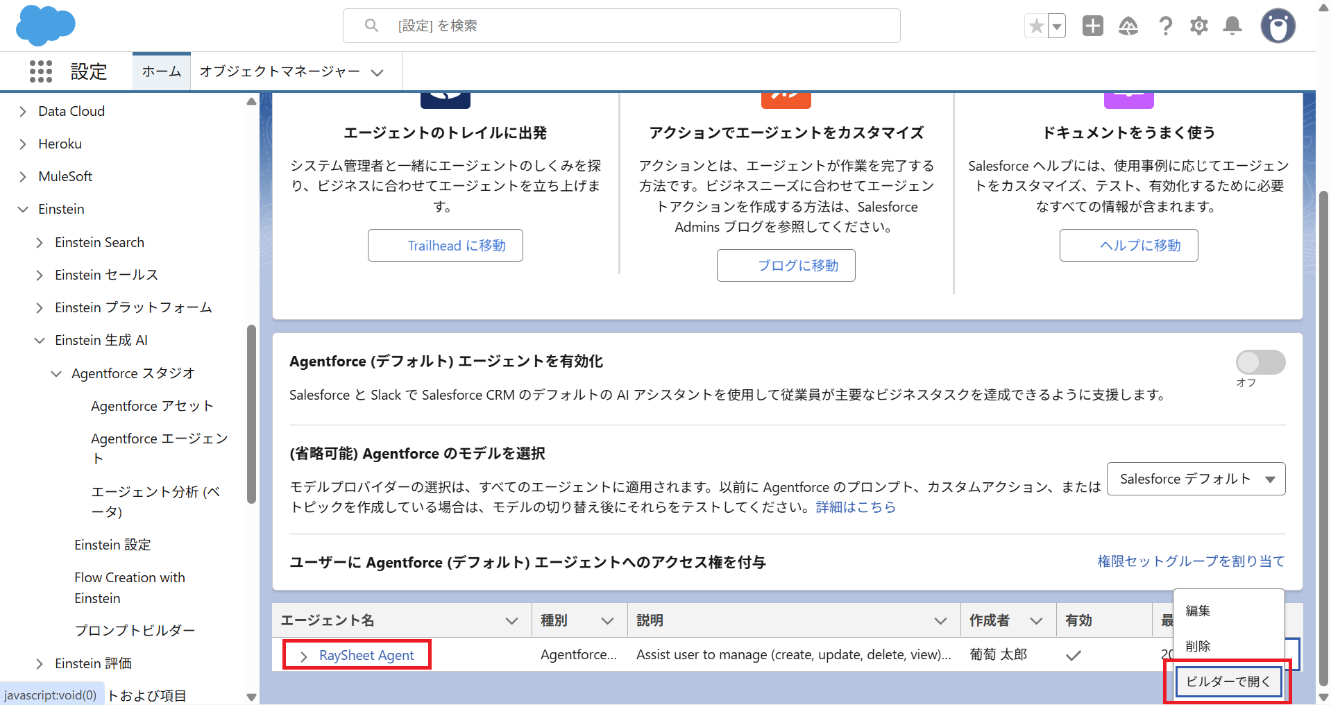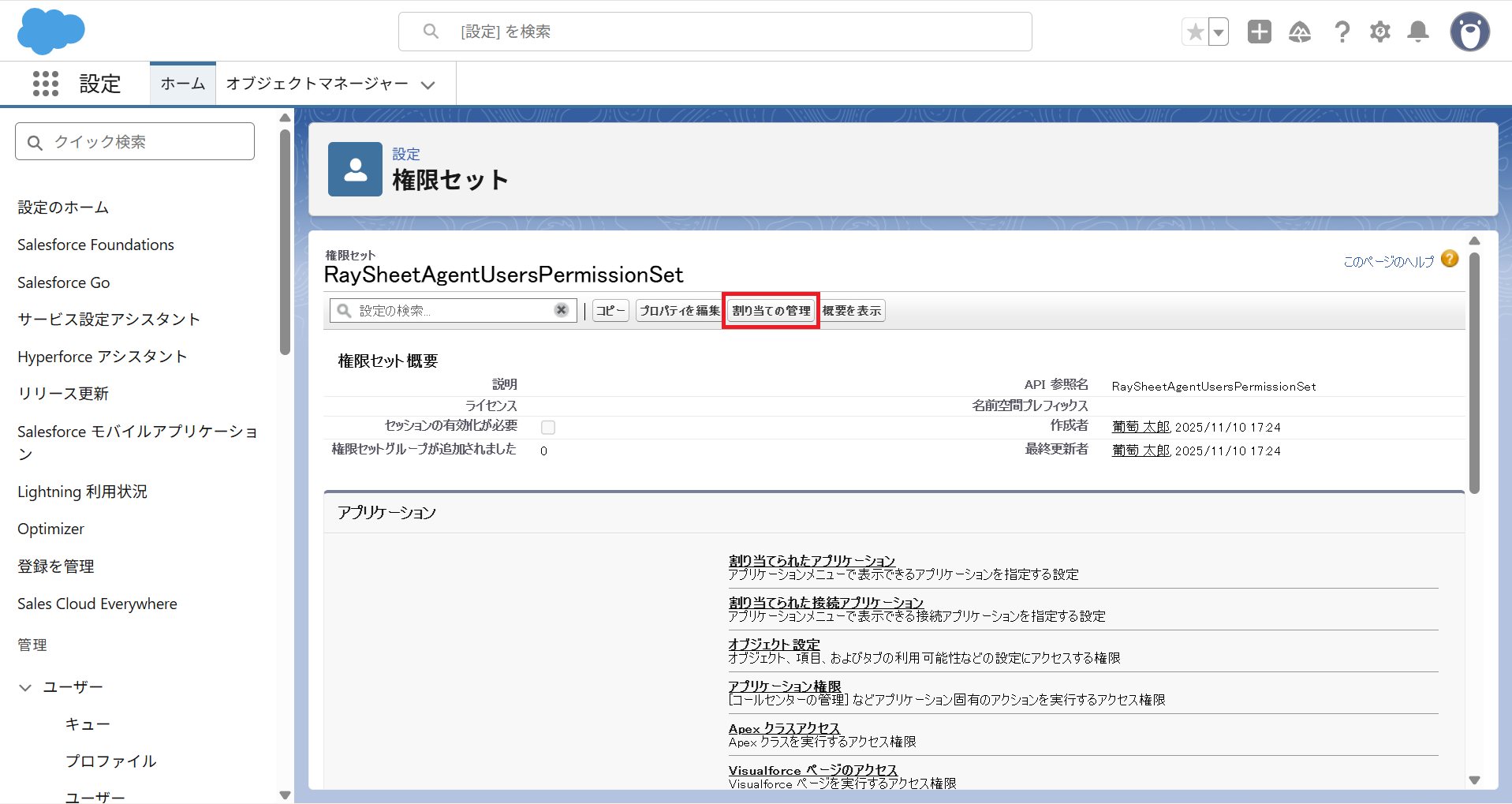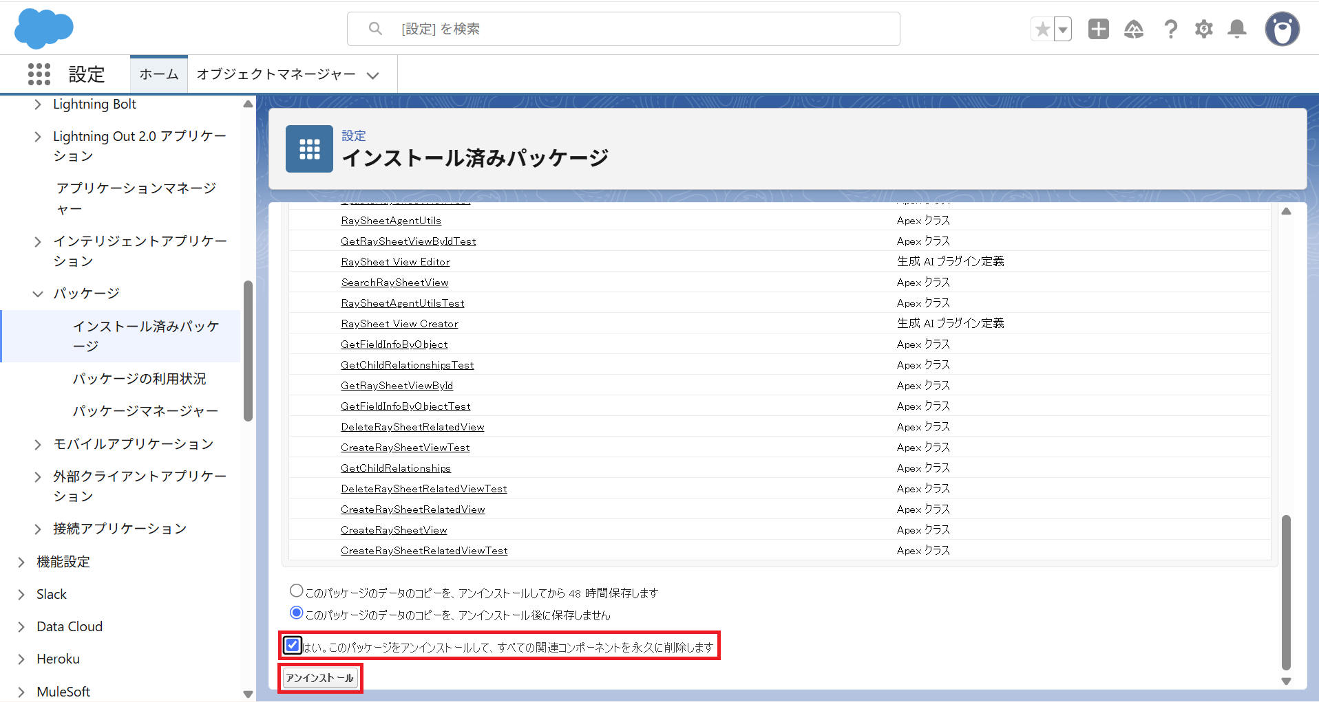 RaySheet Agentをアンインストールするためには、導入時に作成した「権限セット」と「Agent」を削除する必要があります。