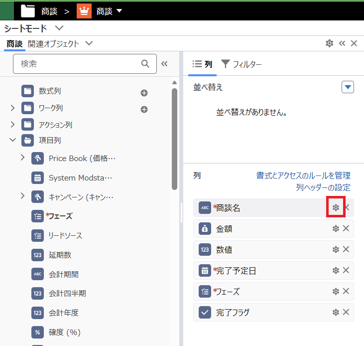 3.「OK」をクリックして「列の設定」画面を閉じる。