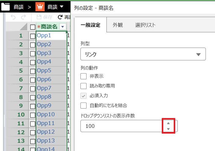 *ドロップダウンリストの表示件数は「ドロップダウンリストの表示件数」で設定できます。 Salesforceの数式項目の場合は、データ型がチェックボックスのみドロップダウンリストを使用できます。